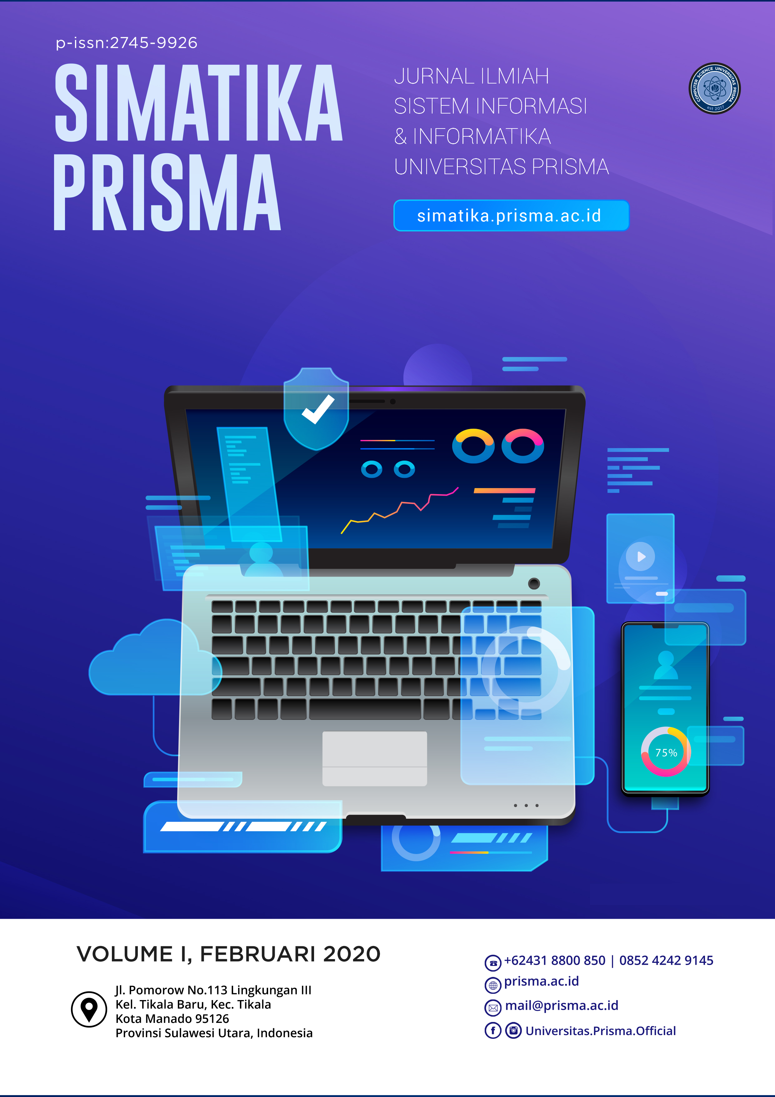 Jurnal Ilmiah SIMATIKA PRISMA: merupakan peer reviewed jurnal yang diterbitkan oleh Program Studi Sistem Informasi dan Program Studi Informatika Fakultas Sains dan Teknologi Universitas Prisma. Jurnal ini mewadahi hasil-hasil penelitian di bidang ilmu Komputer seperti Grafik Komputer, Kecerdasan Buatan, UI/UX, Sistem Informasi, Rekayasa Perangkat Lunak, Keamanan Informasi, Algoritma dan Pemrograman. Jurnal Ini terbit dua kali setahun (Februari dan September)
